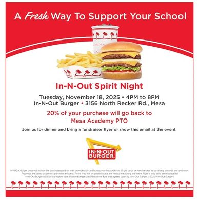 Lettuce raise some funds—one burger at a time! Show your flyer when you order and 20% of your purchase gets donated back to the PTO.